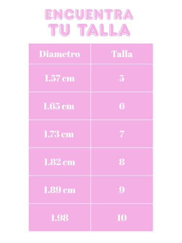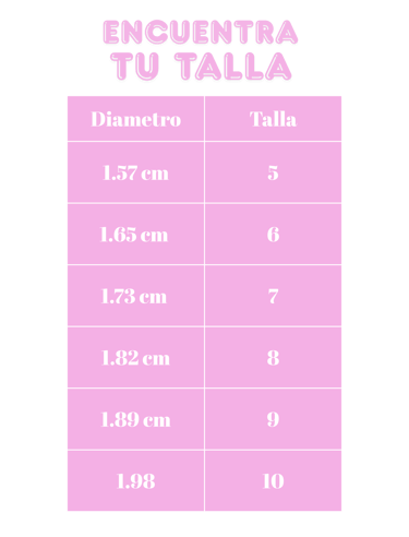 Con la regla, mide el diámetro del anillo, de extremo a extremo. Y revisa la tabla.